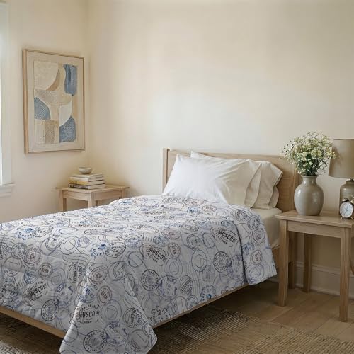 Italian Bed Linen BASIC Printed Summer Quilt, Microfibre, Urban Blue, Single 160 x 240 cm