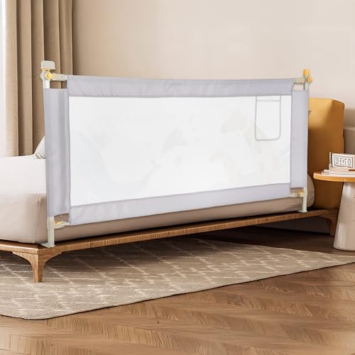 Baby Bed Guard Rail for Toddler - 59in Adjustable Heights, Swing Down Bedrail, Extra Tall Child Safety Side Railing Guards for Kids - Toddler Bed Rail for Queen, King, Twin, and Bunk Size Beds - Full