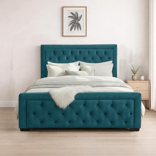 Teel King Size Bed with Mattress Included | Plush Upholstered King Size Bed Frame with Chesterfield Headboard & Footboard | Bedroom Furniture | Bed & Mattress Sets