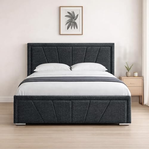 Luxury Charcoal Naples Double Bed with Mattress Included | Room Decor Sunrise Bordered Floor Standing Headboard & Footboard | Wooden Double Bed Frame with Memory Foam Mattress | Bed & Mattress Sets