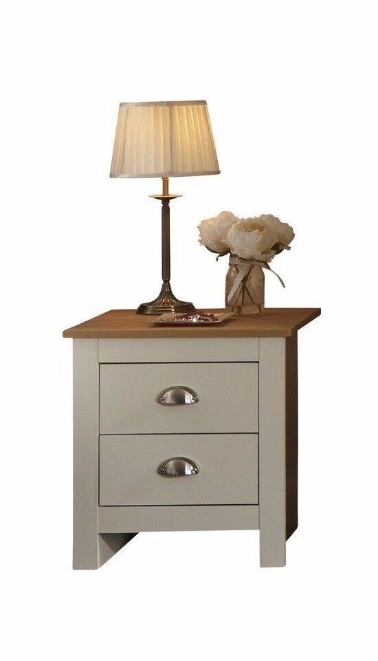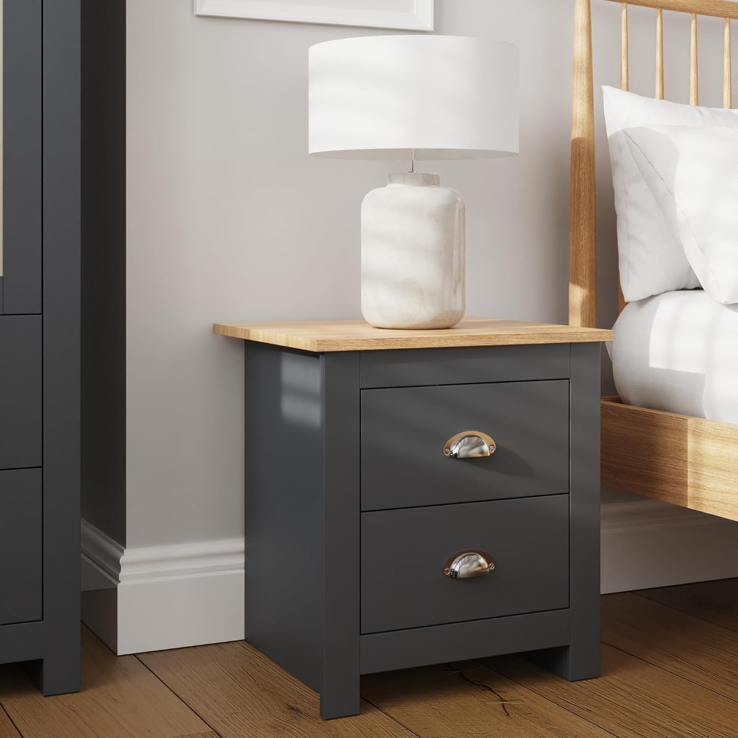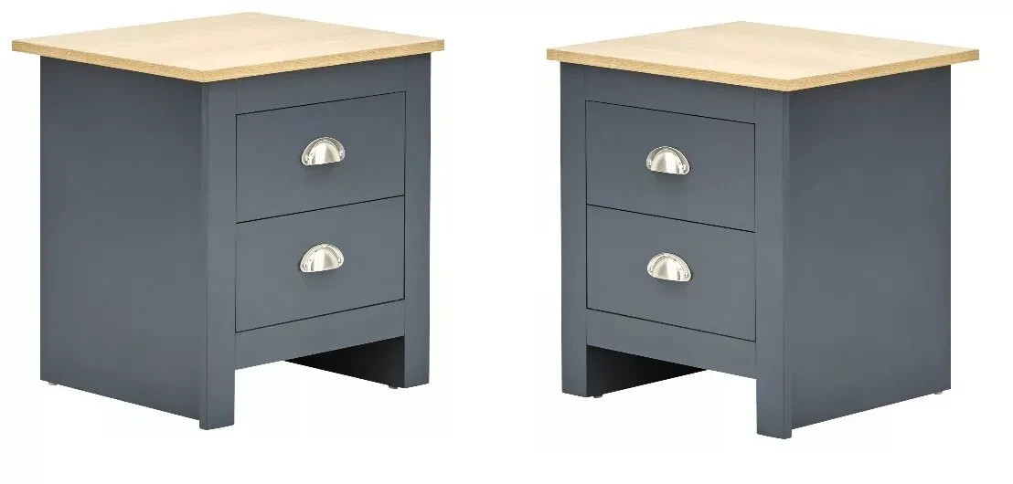 2 drawer bed side drawers Country style bedroom furniture - Grey Lancaster