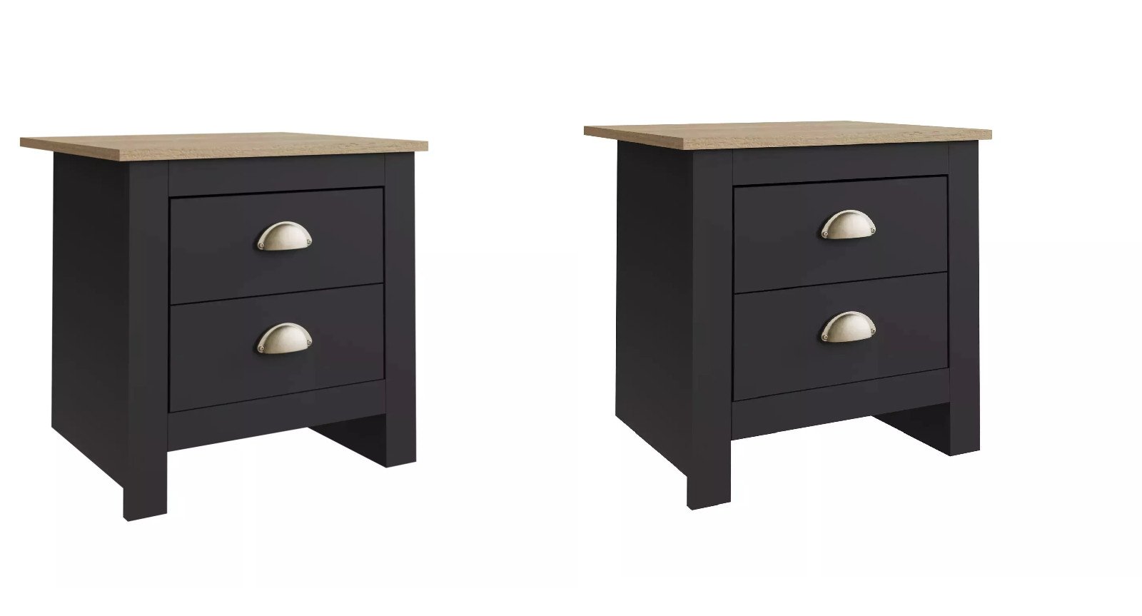2 drawer bed side drawers Country style bedroom furniture - Black Lancaster