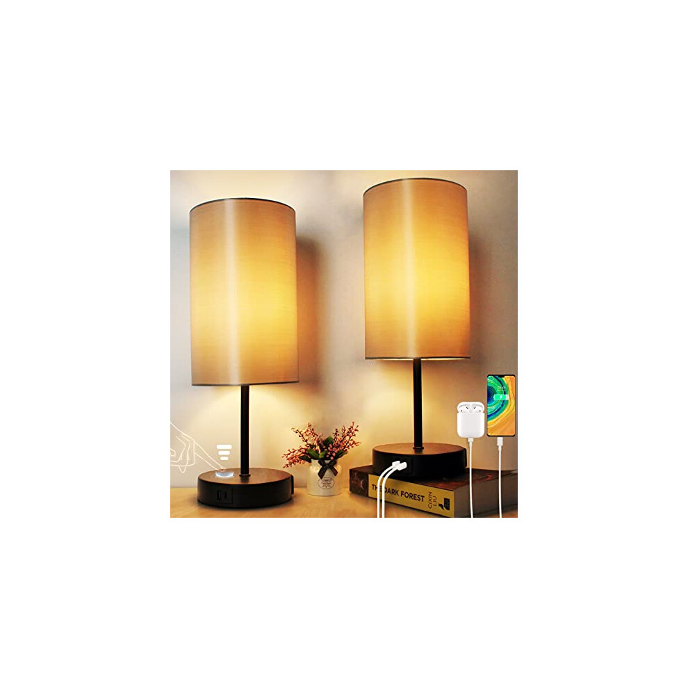 Wudyfei Touch Bedside Lamps Set of 2, Small Dimmable Table Lamps with USB-C USB-A Charging Ports, LED Minimalist Bed Side Nightstand Lamp for Bedroom, Living Room, Kids Room, Study, Dorm, Office
