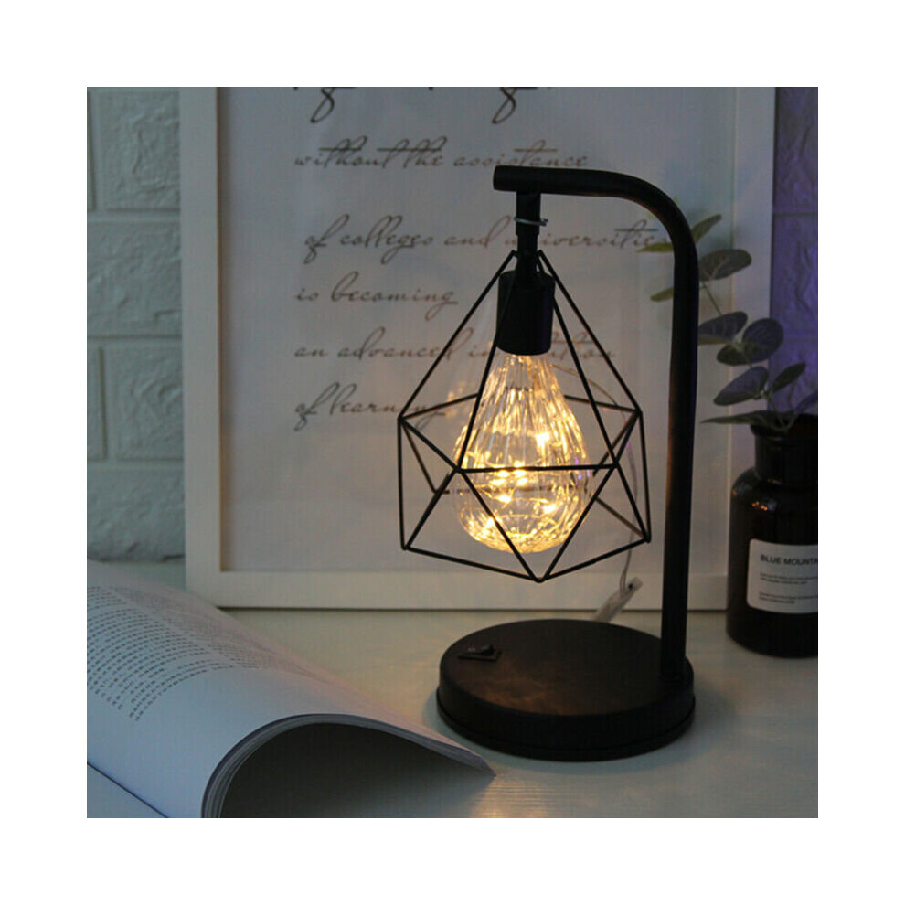 Retro Black Industrial LED Geometric Lamps Desk Lights BedSide Table