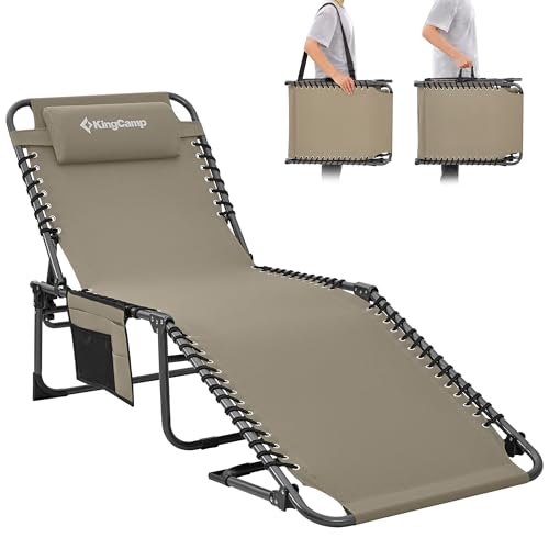KingCamp Camp Beds for Adults Sun Lounger 5-Position Adjustable Backrest for Garden Recliner Chaise Lounge Chair Folding Portable with Strap Sun bed for Tents Terrace Car Camping Guest Bed Outdoor