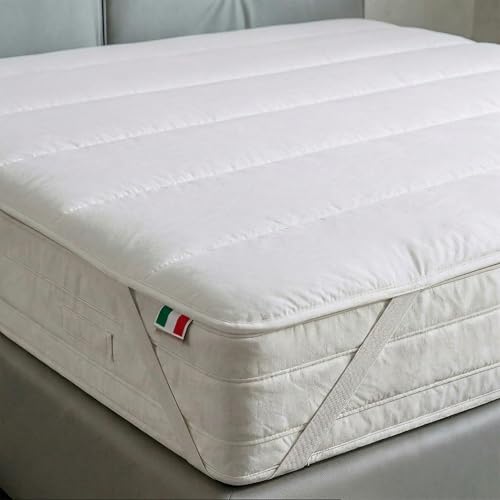 Italian Bed Linen Topper Padded and Quilted, Microfibre Una Piazza e Mezza Francese Bianco