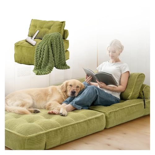 SJWJWOO Foldable Lazy Floor Bed Adult, with Bubble Blanket, lint roller Human Dog Bed for Kids Floor Beds for Adults for Adults People Fits Pet Families,green