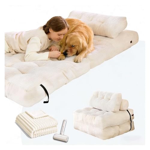 SJWJWOO Folding Lazy Floor Bed Adult, with Bubble Blanket and lint roller Human Sized Dog Bed Lazy Sofa Bed for Living Room, Bedroom, Movie Room,white