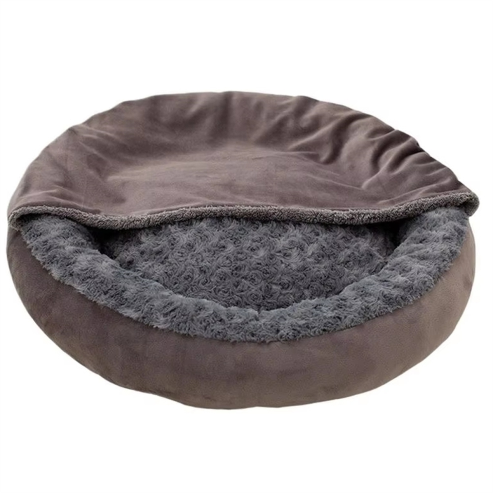 Small Dog Bed and Cat Bed with Hooded Blanket, Round Warm Pet Bed for Indoor Outdoor Winter Use, Cozy Animal Sleeping Place