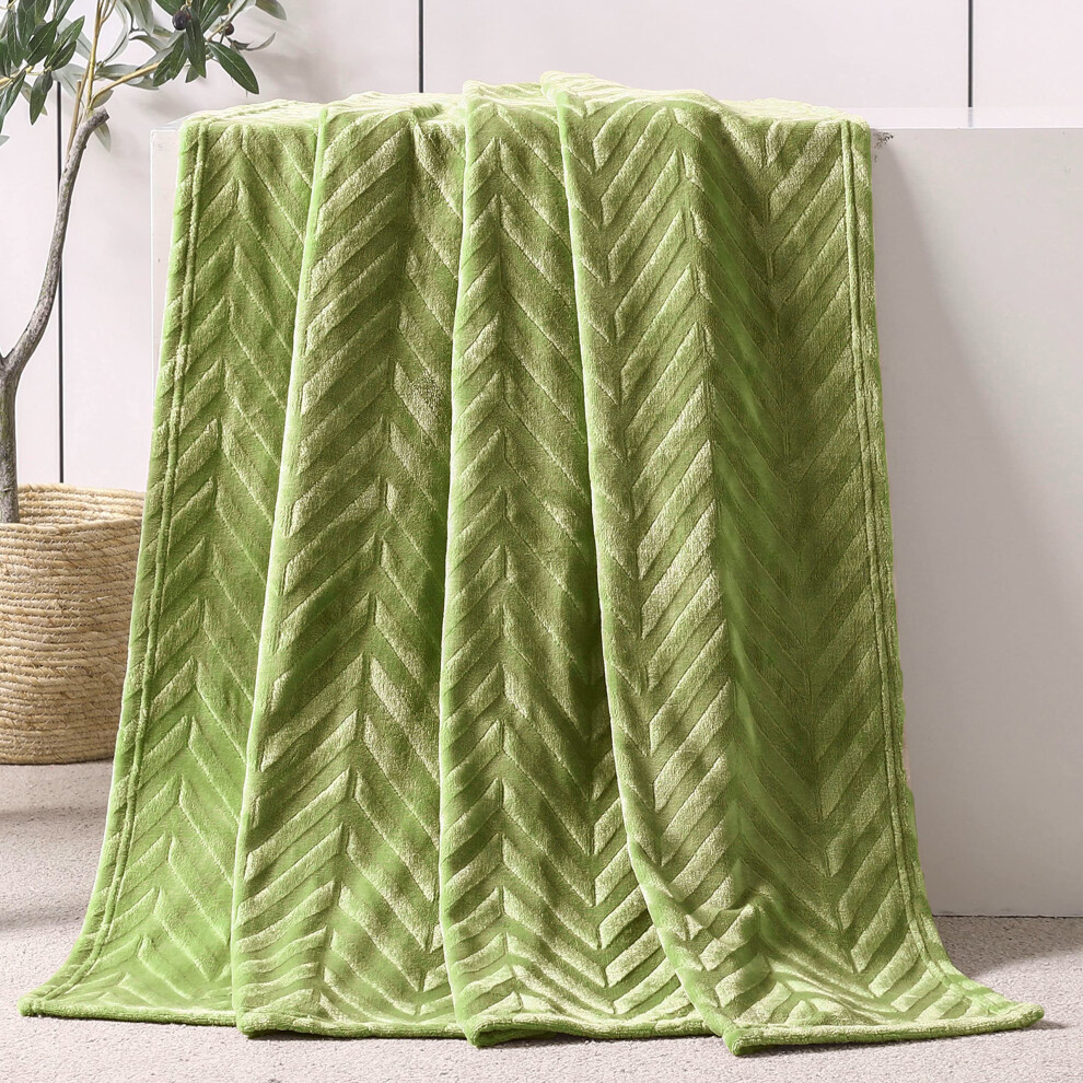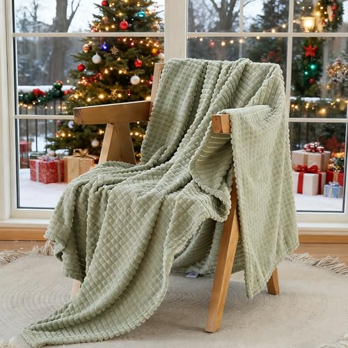 Simple&Opulence Fleece Throw Blanket, Soft Fluffy Sofa Throw, Warm Cozy Microfiber Bed Blanket with Grid Design for All Seasons, 130 x 170CM, Sage Green