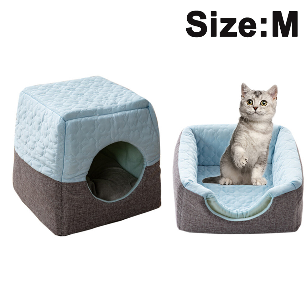 Dog Bed Cat Dog Sofa Bed Dog House Nest Cave Rectangle Soft Cat Dog Sofa Bed with Cooling Mat Blanket & Toy Bone