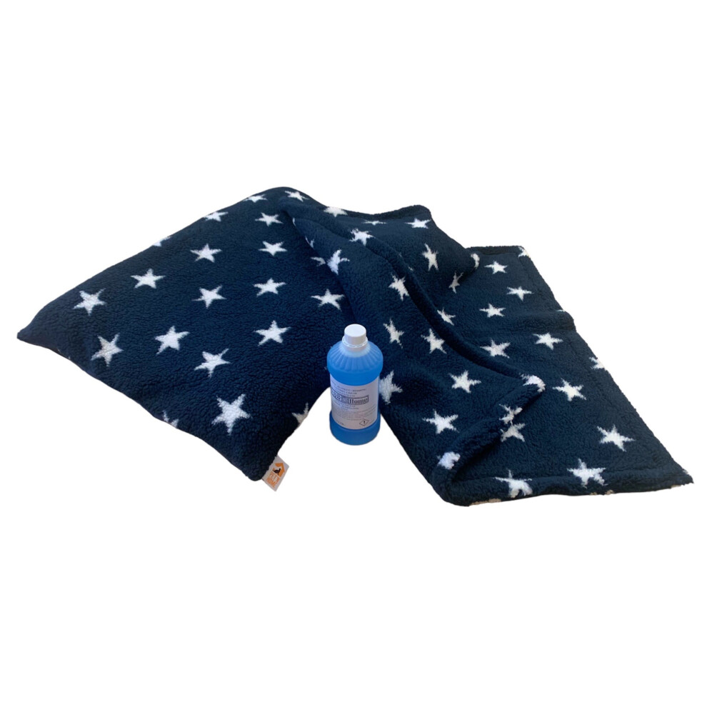 (Blue with White Stars, With Detergent) PUPPY BED SET - 10 Colour Choices - Dog Bed Cushion with Matching Blanket, optional Pet Bedding Detergent