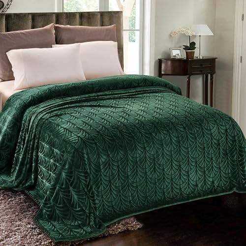 Whale Flotilla Flannel Fleece King Size Blanket for Bed, 230x264 CM Soft Fluffy Velvet Bed Blanket with Decorative Vintage Pattern for All Season, Warm and Lightweight, Deep Green