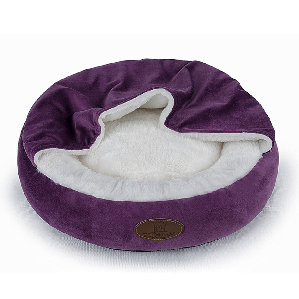 purrrfect life Oval Pet Beds for Cats and Small Dogs Snuggery Pet Bed with Attached Blanket Hooded Bolster Bed Ultra Soft Short Plush Washable Hig