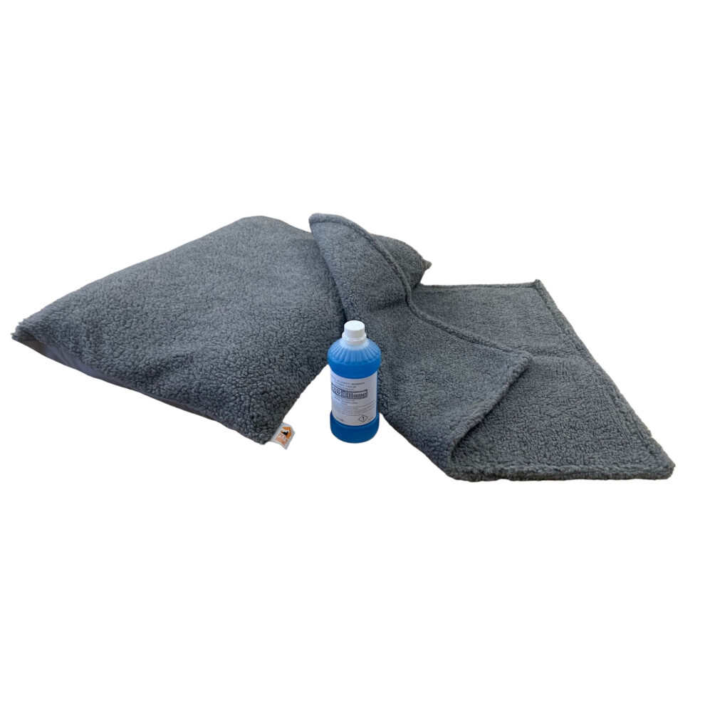 (Grey, With Detergent) PUPPY BED SET - 10 Colour Choices - Dog Bed Cushion with Matching Blanket, optional Pet Bedding Detergent