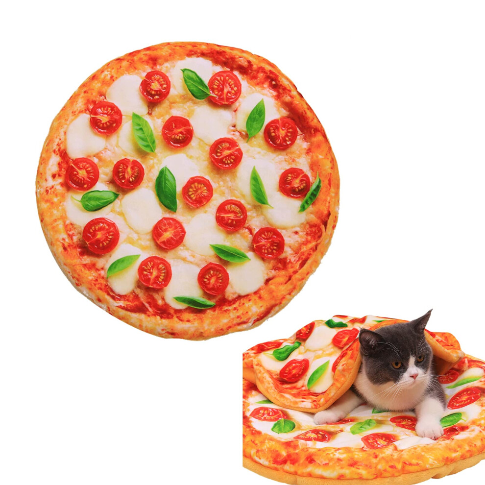 Cute Cat Dog Bed with Blanket,20.8''x20.8'' Ultra Soft Creative Pizza Cat Bed