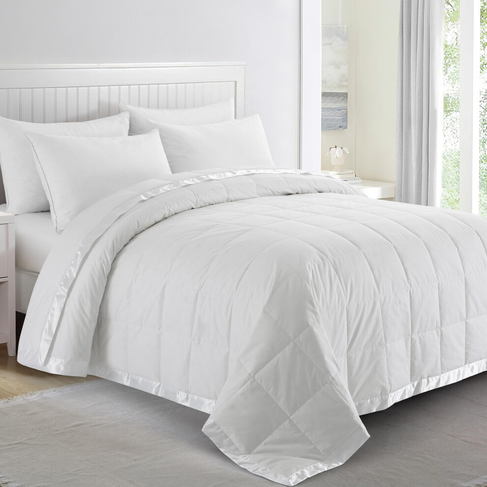 puredown Blankets King Size - Soft Lightweight Down Blanket for All Seasons Cozy Warm Luxury Bed Blanket with Satin Trim Cotton Cover White (108""""