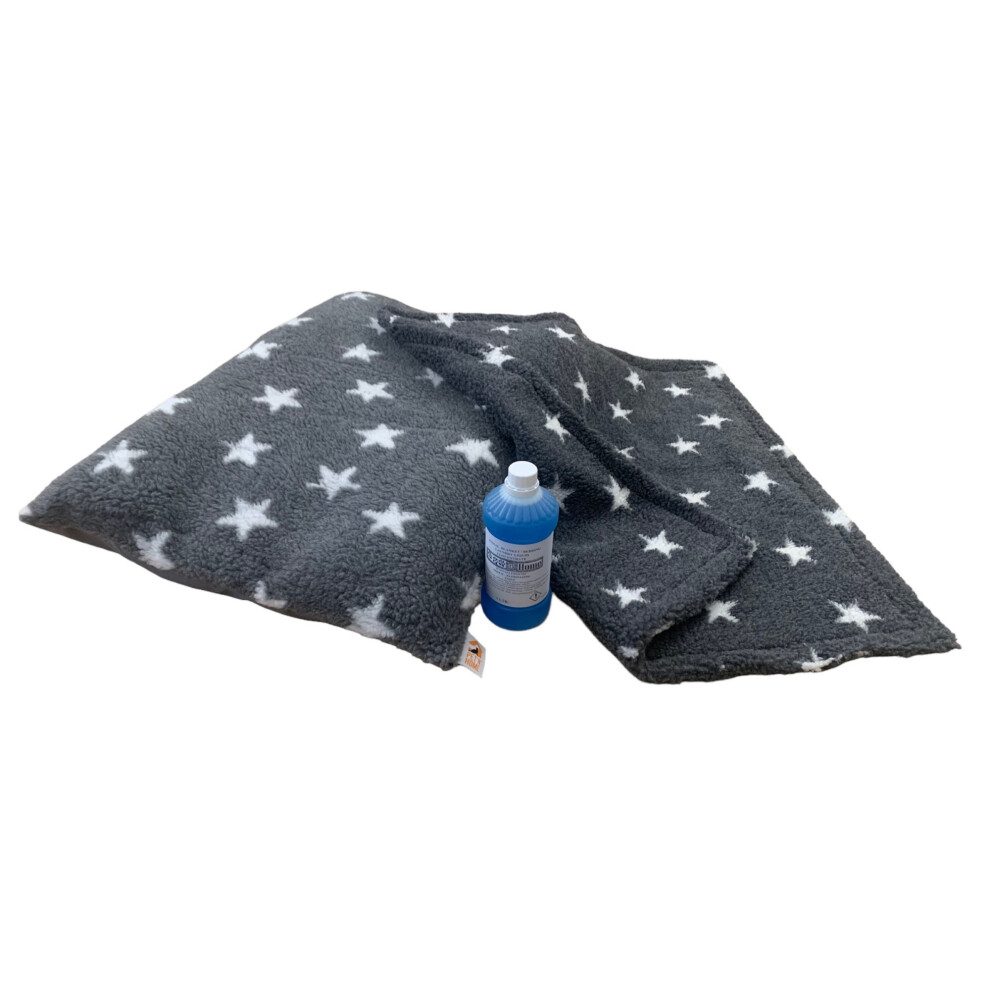 (Grey with White Stars, With Detergent) PUPPY BED SET - 10 Colour Choices - Dog Bed Cushion with Matching Blanket, optional Pet Bedding Detergent
