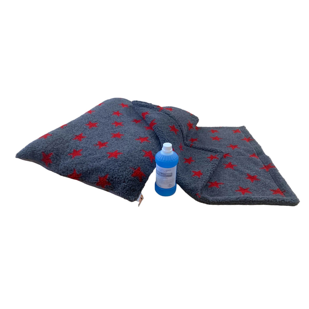 (Grey with Red Stars, With Detergent) PUPPY BED SET - 10 Colour Choices - Dog Bed Cushion with Matching Blanket, optional Pet Bedding Detergent