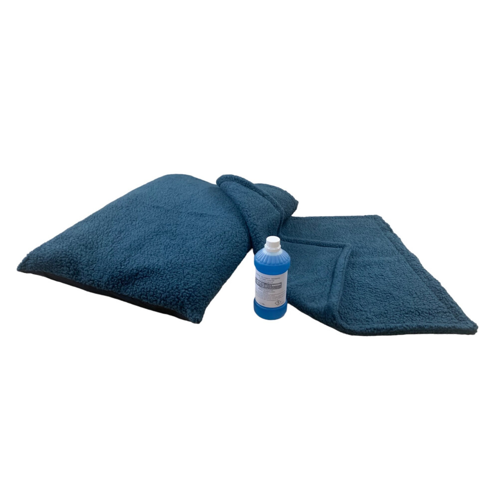 (Blue, With Detergent) PUPPY BED SET - 10 Colour Choices - Dog Bed Cushion with Matching Blanket, optional Pet Bedding Detergent