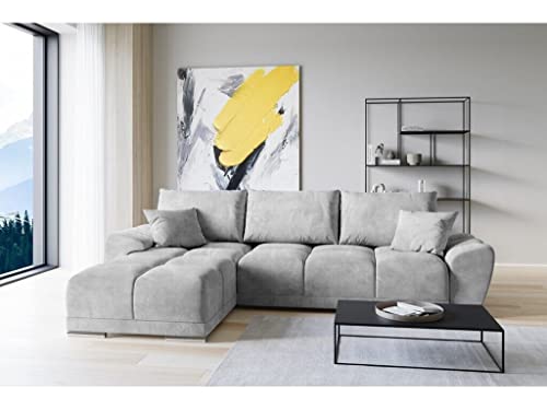 Easy Velvet L-Shape Corner Sofa - Light Grey Sofa - Couch with Storage Space and Cushion - Pull-Out Sofa Bed - Sofa with Sleep Function - Sofa Bed with Bed Box - Guest Bed - 291 x 183 cm