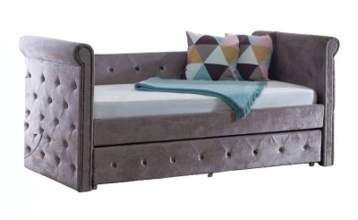 MQLAE Daybed with Storage, Upholstered Ottoman With Charging Station 90x190 cm, 3ft Single Gas Lift Bed with Wooden Slats, Guest Bed Sofa Beds For Adults Children Teenagers, Velvet, Grey, No Mattress
