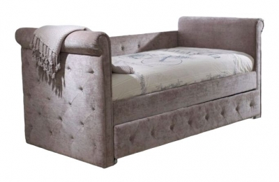 MOORCROFT BEDS Single Day Bed With Trundle Guest Bed Sofa Bed Plush Velvet Upholstered Chesterfield Tufted Buttons (Pink)