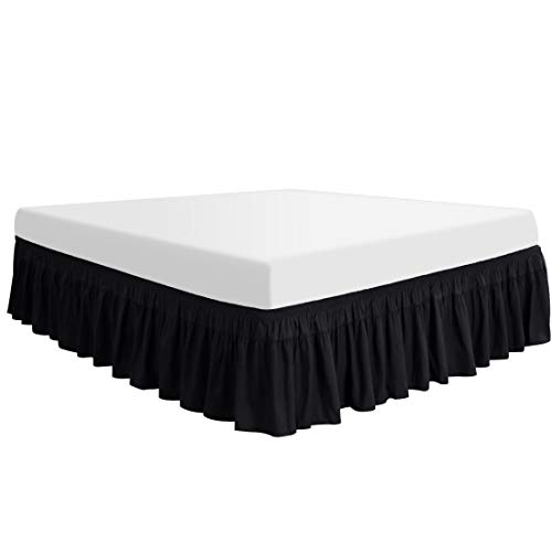PiccoCasa Polyester Wrap Around Bed Skirt,Elastic Dust Ruffles Bedskirts,Fade & Wrinkle,No Lift Mattress,Three Fabric Sides with 16 Inch Drop Black Queen