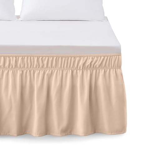 Morbuy Elasticated Bed Skirt Ruffle, Microfiber Bed Skirt Dust Ruffle Bed Valance Skirt with 38cm Ruffles, Wrap Around Bed Skirt Three Sides Elastic Band for Single Double King (US-Twin,Beige)