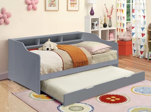 Panana Wooden Single Day Guest Bed With Pull Out Trundle 2 in 1 Bedroom Furniture - Fits 90 * 190 Mattress - Gray