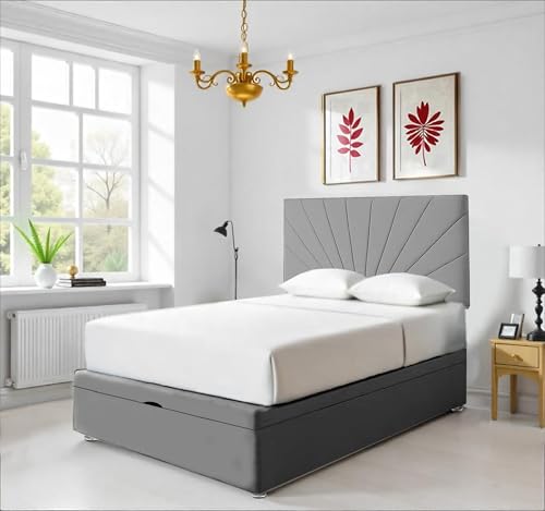 Home Treats Side Lift Up Ottoman Upholstered Bed Double | Grey Fabric Ottoman Bed Frame With Under Bed Storage (Double, Tufted Bonnel Sprung Mattress)