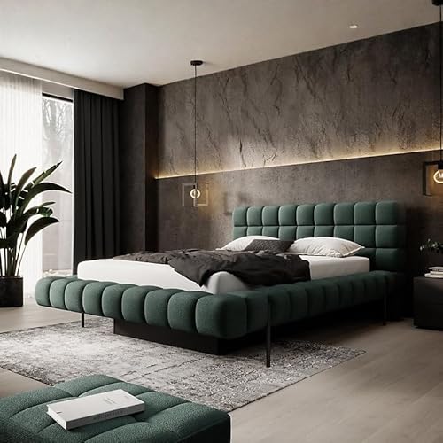 Agritrade AK MAGENTTA 180x200 Upholstered Double Bed Frame with Under-Bed Storage, Metal Frame & Legs, Padded Headboard, Modern Bedroom Furniture