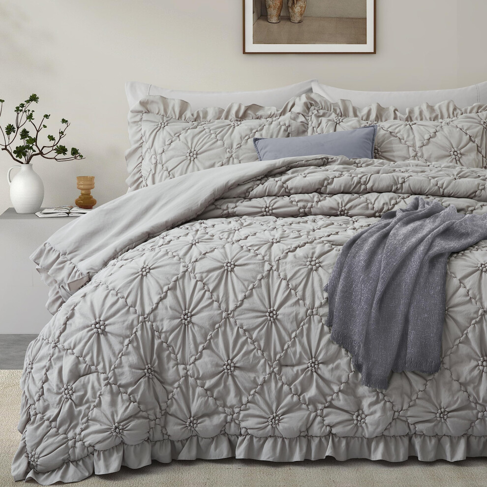 BEDAZZLED Twin Size Comforter Sets Grey Bedding Comforter Set 2 Pieces Pinch Pleat Bedding Sets with Comforter and Pillowcases Soft Farmhouse Shabb
