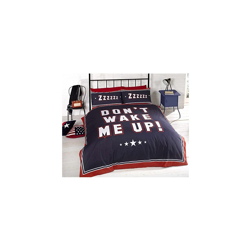 Bedding Heaven Don't Wake Me Up Duvet Cover. Fully Reversible. Perfect Teenage Bedding Set. Blue and Red Striped Double, by Bedding Heaven
