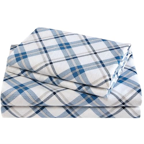 True North by Sleep Philosophy Cozy Flannel 100% Cotton Ultra Soft Cold Weather Sheet Set Bedding, Twin, Blue Plaid