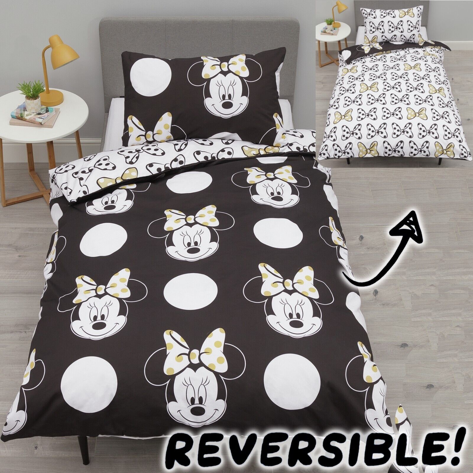 Reversible Disney Minnie Mouse Gold Bows Single Duvet Quilt Cover Bedding Set