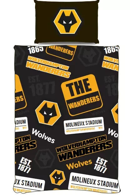 WOLVERHAMPTON FC SINGLE DUVET COVER SET FOOTBALL BEDDING NEW OFFICIAL LICENSED
