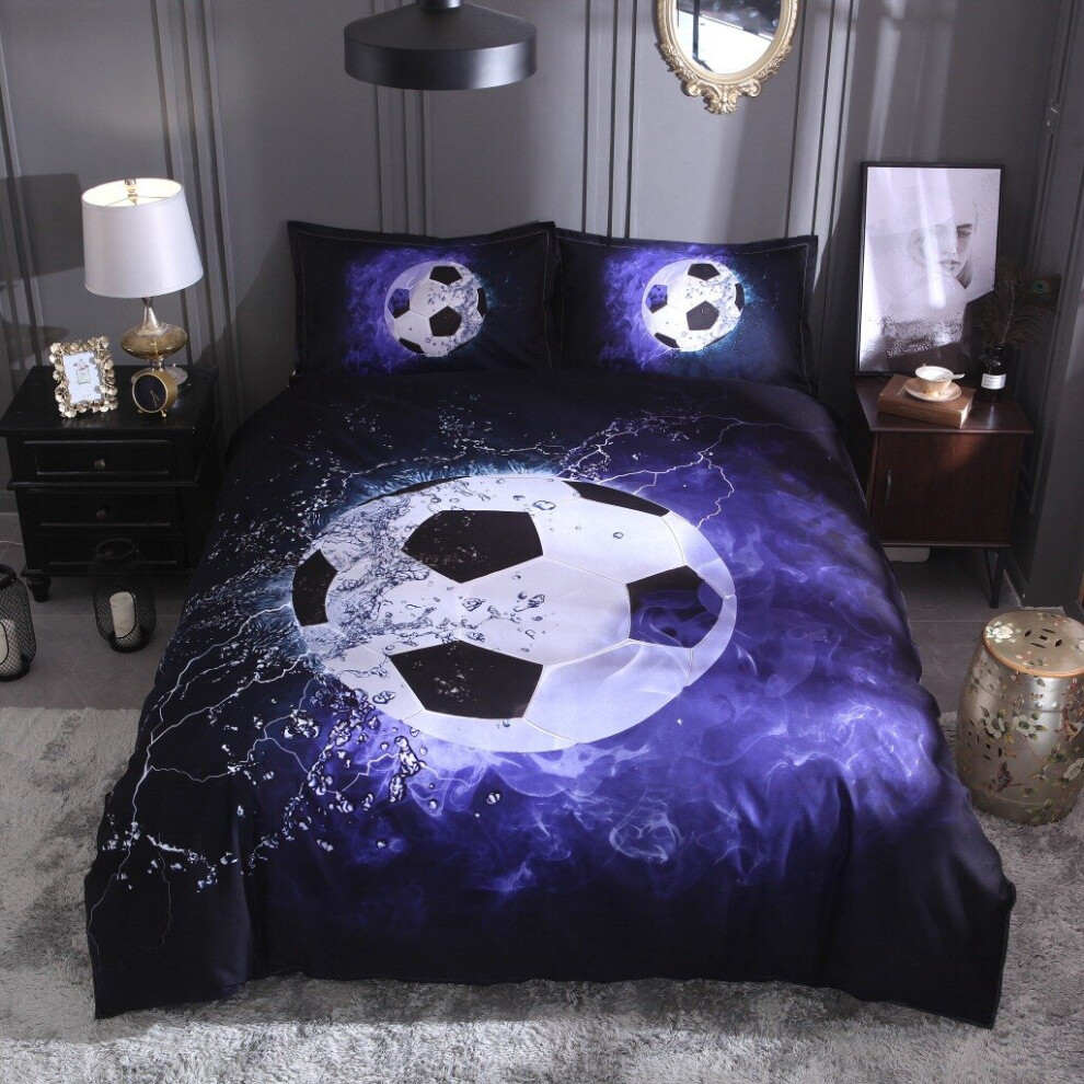 (Double-200x200cm, 3) Football Bedding Kids Single Double 3D Duvet Cover Set