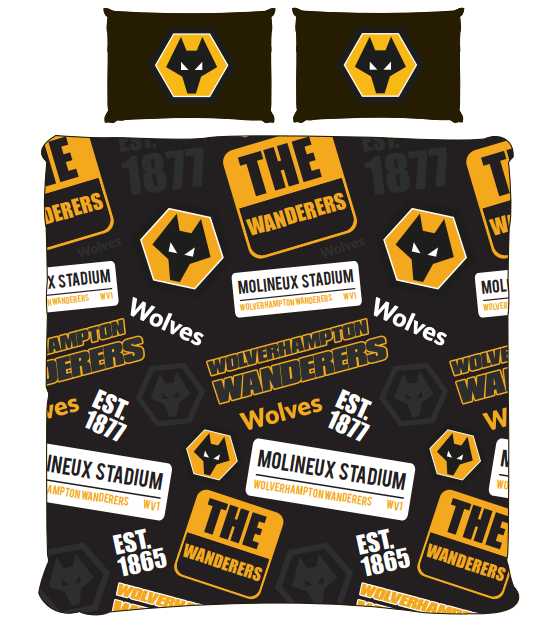 WOLVERHAMPTON FC DOUBLE DUVET COVER SET FOOTBALL BEDDING OFFICIAL LICENSED