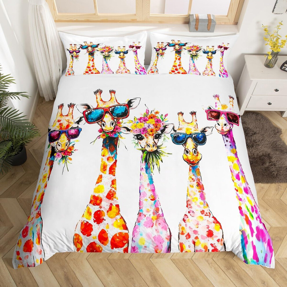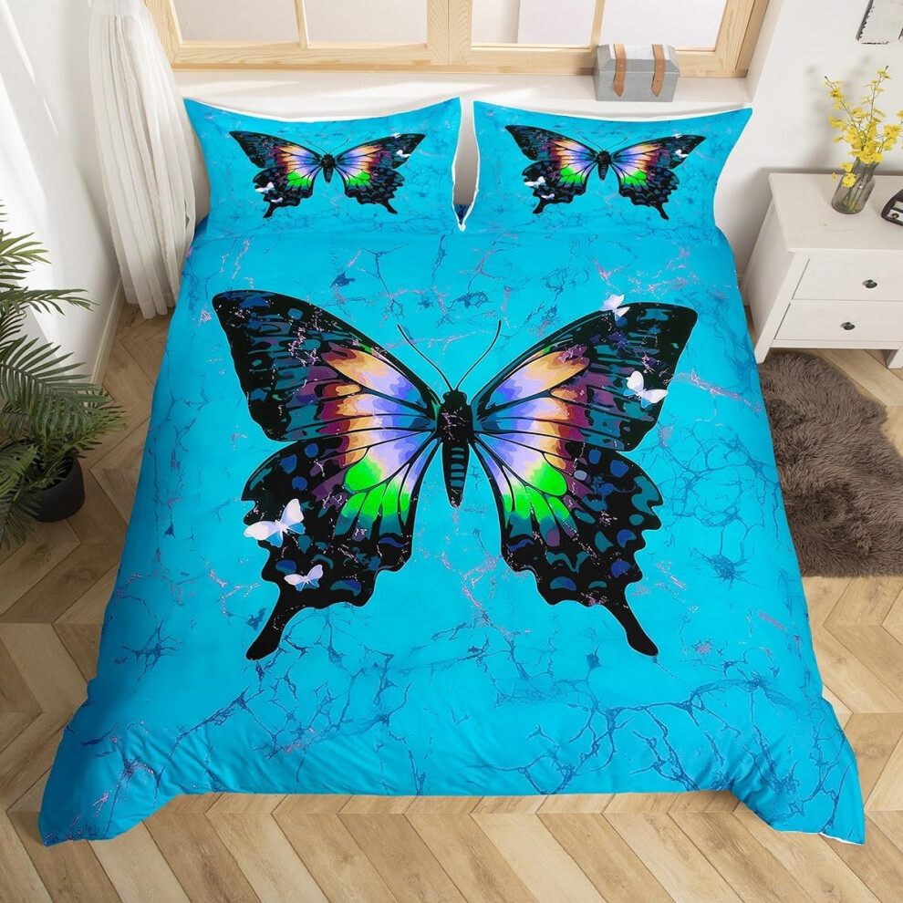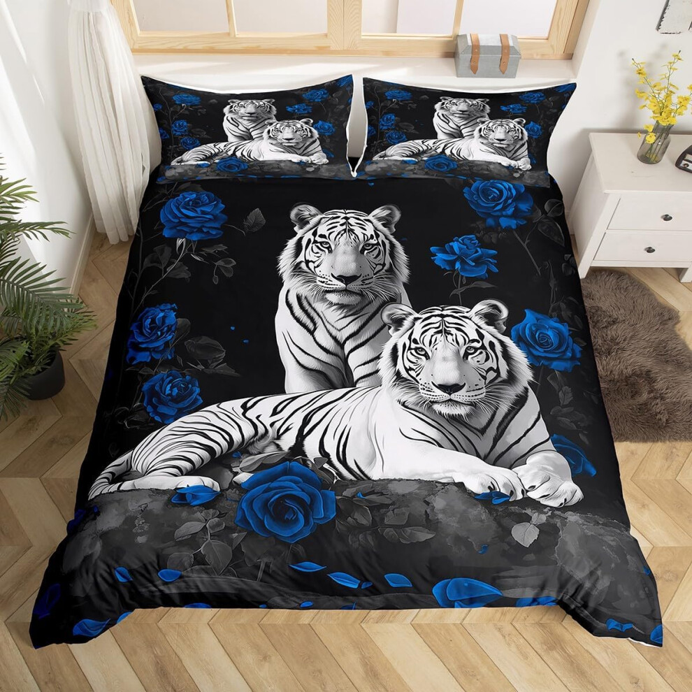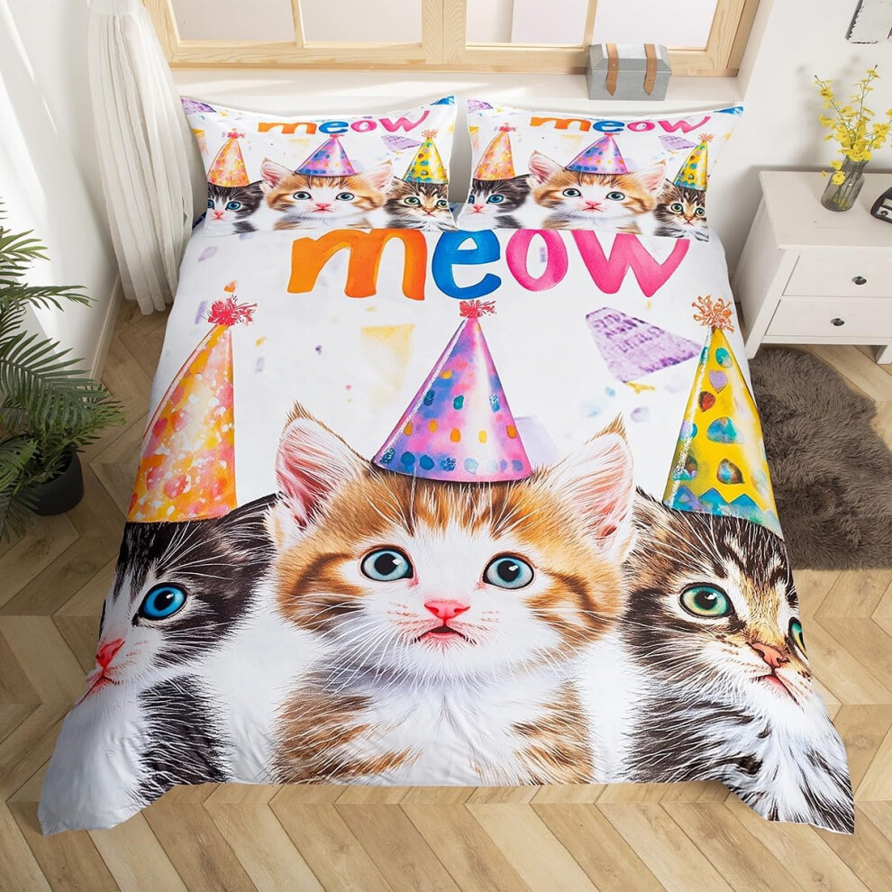 HOMHOMHA Double Duvet Cover Set - Blue Cat Print Bedding Set for Double Bed - 100% Microfibre Bed Cover -200x200 cm &2 Pillowcases 50x75