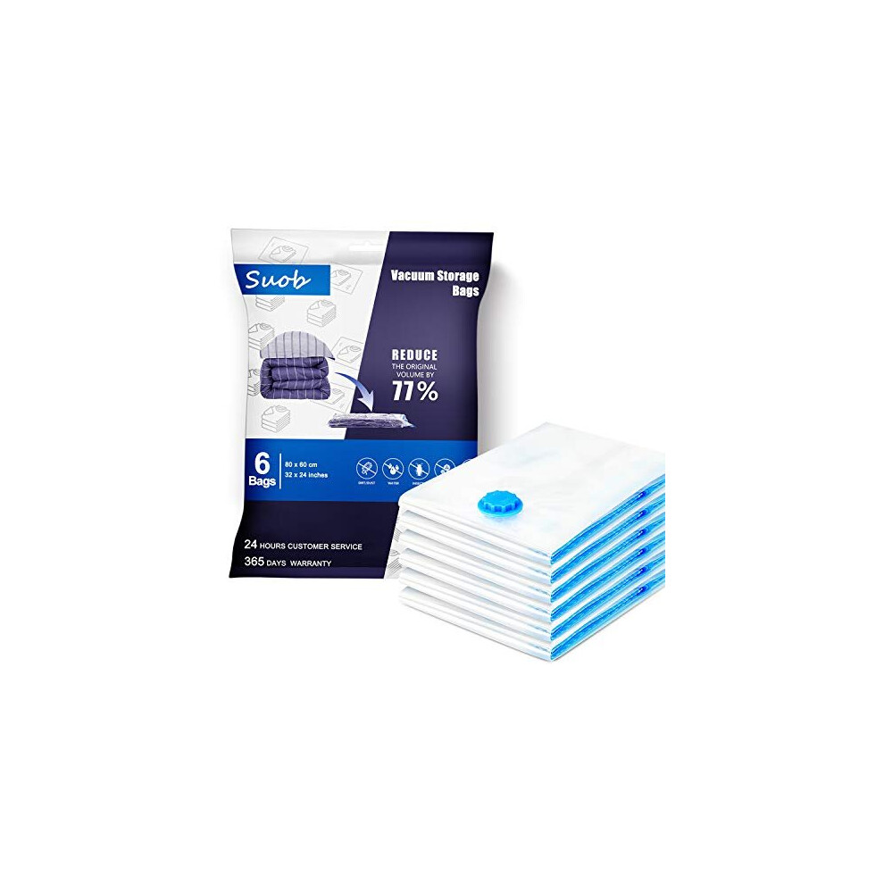 Suob 6 Pack Vacuum Storage Bags, 80 x 60cm Double Zip Seal Reusable for Bedding, Double Duvet, Pillows, Mattress, Quilt, Clothes, Sweaters, Dress,