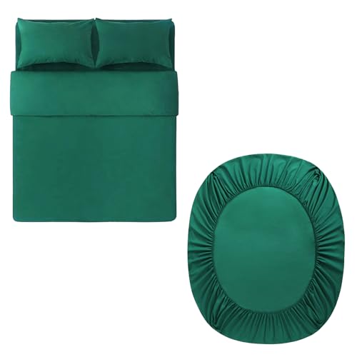 Aisbo Double Duvet Set with Sheet - Green 4 Pieces Microfiber Bedding Set for Double Bed, Includes Duvet Cover, Fitted Sheet and Pillowcases