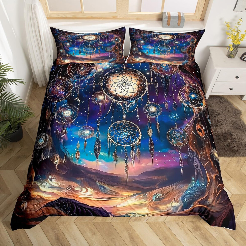 (Blue Pink, Double(No Comforter)) Homewish Dream Catcher Bedding Set Double for Girls Galaxy Dreamcatcher Boho Comforter Cover Woman Purple Starry Fea