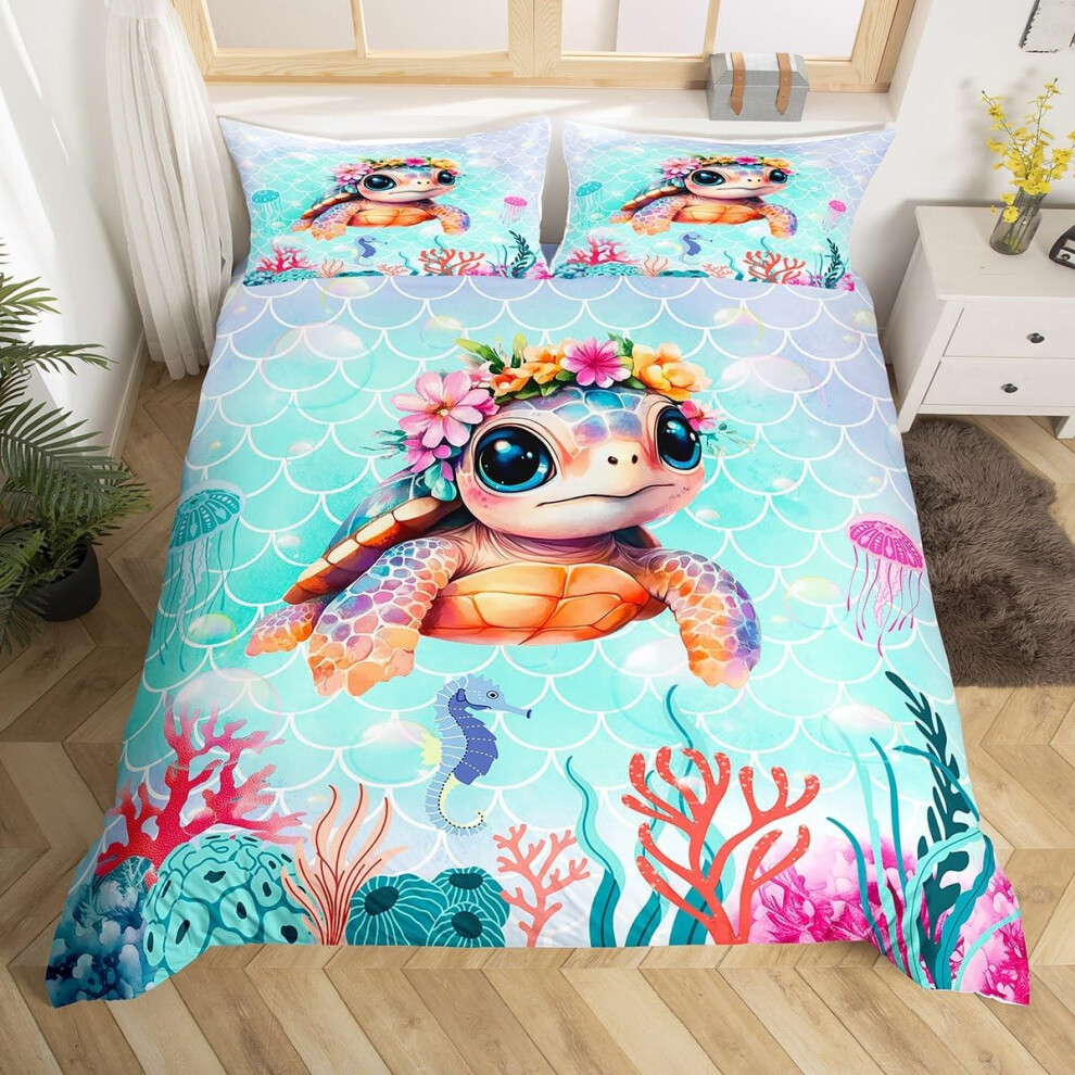 Aisbo Double Duvet Set with Sheet - Teal 4 Pieces Microfiber Bedding Set for Double Bed, Includes Duvet Cover, Fitted Sheet and Pillowcases