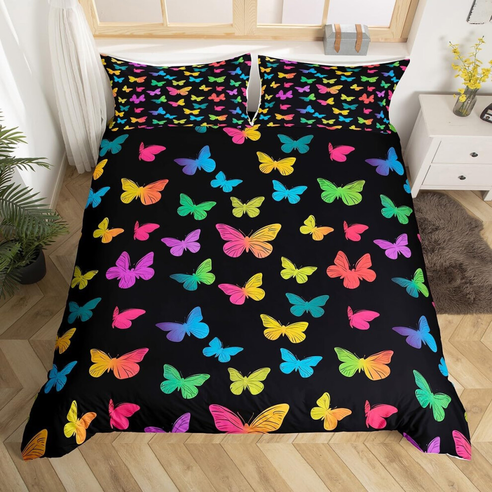 Aisbo Double Duvet Set with Sheet - Black 4 Pieces Microfiber Bedding Set for Double Bed, Includes Duvet Cover, Fitted Sheet and Pillowcases