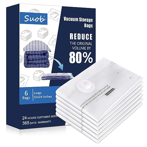 Suob 6 Pack Vacuum Storage Bags, 80 x 60cm Double Zip Seal Reusable for Bedding, Double Duvet, Pillows, Mattress, Quilt, Clothes, Sweaters, Dress, Coats, Curtains, Blankets”