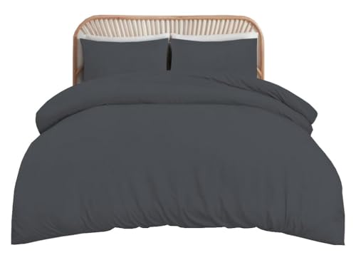 funky gadgets Super King Duvet Set- Soft Brushed Microfiber Plain Dyed Duvet Cover Sets with Pillow Cases- Bedding Quilt Cover Set (Charcoal)