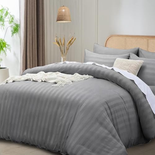 funky gadgets King Size Duvet Cover Sets Charcoal, Microfiber Satin Stripe Duvet Cover Luxury Hotel Bedding Set with Pillowcases Breathable Ultra Soft Reversible Quilt Covers.