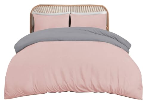 funky gadgets Single Duvet Cover Set – Soft Brushed Microfiber Plain Dyed Duvet Cover Sets with Pillow Case- Reversible Bedding Quilt Cover Set (Blush Pink & Grey)