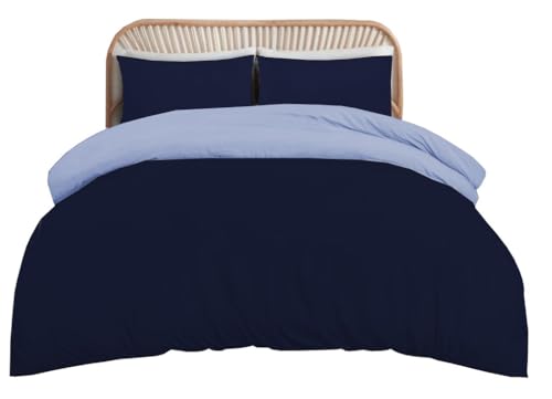 funky gadgets Duvet Cover Set – Soft Brushed Microfiber Plain Dyed Duvet Cover Sets with Pillow Case- Reversible Bedding Quilt Cover Set (Navy & Blue, Double)